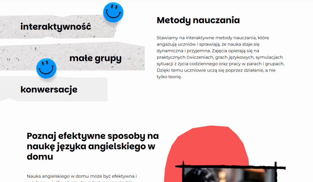 - Nowoczesny, responsywny design dostosowany do potrzeb szkoły językowej